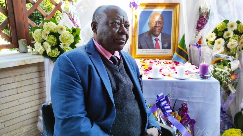 Ilikuwa siku ya Jumamosi ya wiki iliyopita tarehe 20/03/2021 Watanzania nchini Italy walikutana Ubalozini kwa ajili ya sala na maombi kufutia kifo cha aliekuwa Raisi wa Jamhuri ya muungano wa Tanzania Dr John Pombe Joseph Magufuli. Ghafla hiyo ya maombolezo na sala ilihitimishwa kwa hotuba fupi ya kuwashukuru Watanzania waliowakilishi wengi ambao kwa sababu za hali ya maradhi ya corono haikuwezekana kujumuika wengi kwa pamoja.Mh Balozi George Madafa aliwashukuru wote kwa moyo wao na mapenzi waliyoonyesha kwa kutoka mbali na kuja kujumuika wote katika tukio la msiba mkubwa.