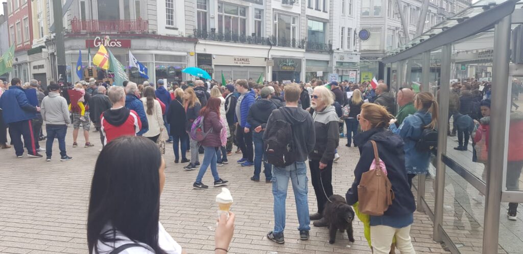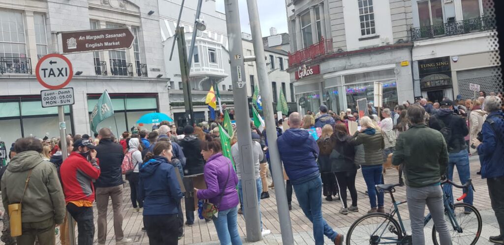 Mamia ya Waandamanaji leo mjini Cork, wakiwa hawajavaa barakoa uko Ayalenda wamejitokeza kwa kuandamana kupinga, kuwekwa karantini na uvaaji wa barakoa.