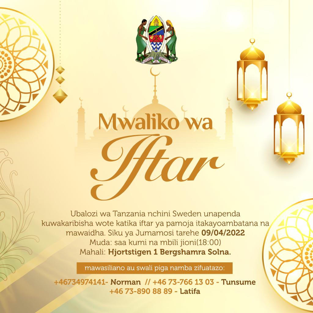 “Tunatoa Shukran za pekee kwa Ubalozi wa Tanzania nchini Sweden kwa kutoa Sadaka ya Futari kwa Diaspora wote.Pia tunawashukuru Diaspora wote walioweza kufika na kushiriki Futari ya pamoja .Asanteni sana kwa kuonyesha upendo na mshikamano.” Jason Junior.